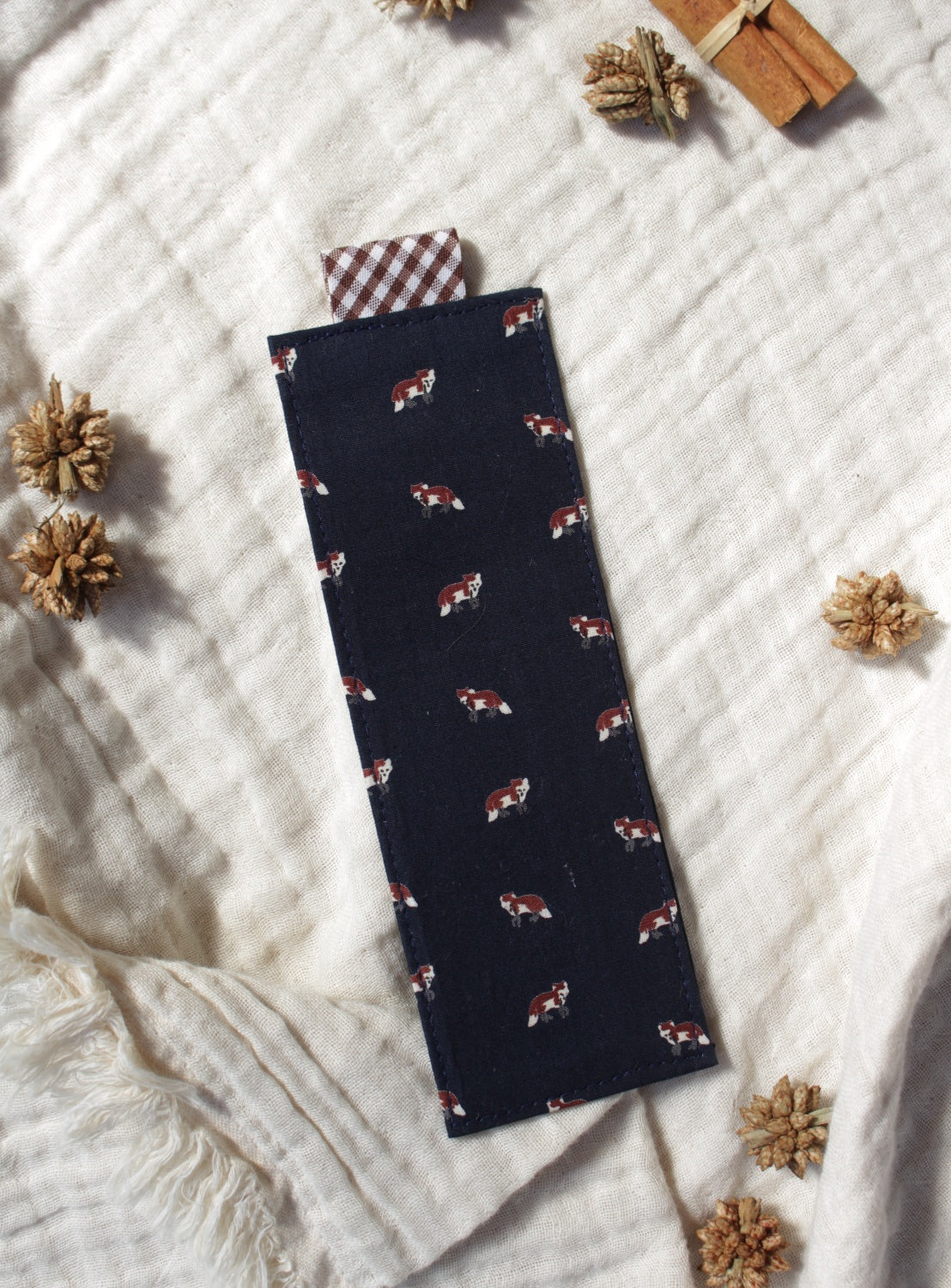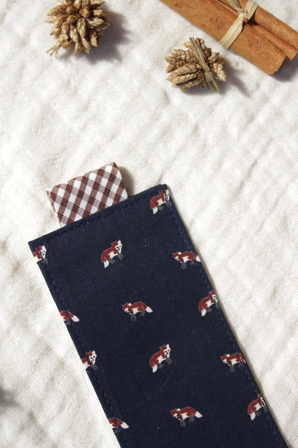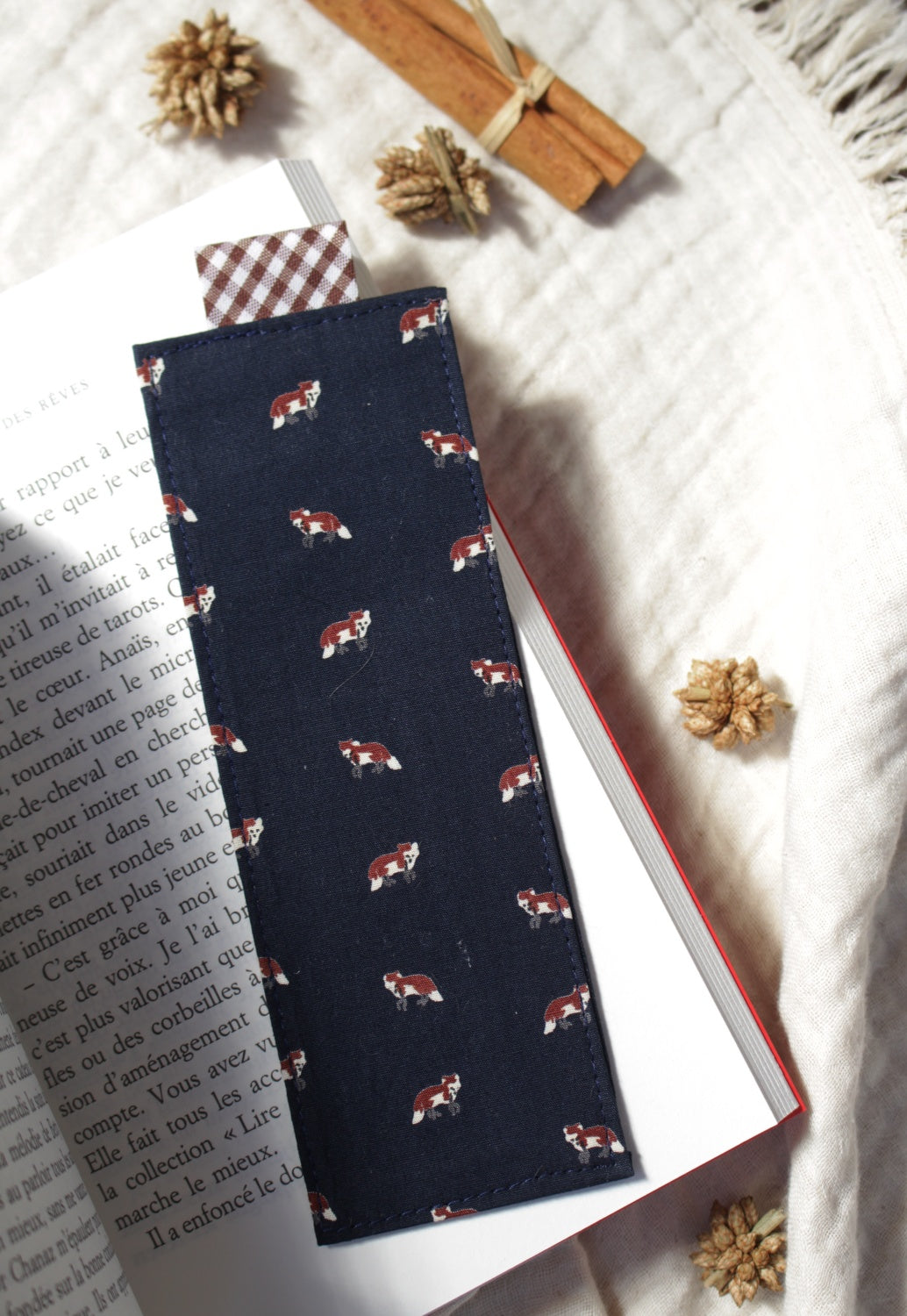 Marque-page en tissu, rigidifié et cousu main par mes soins.