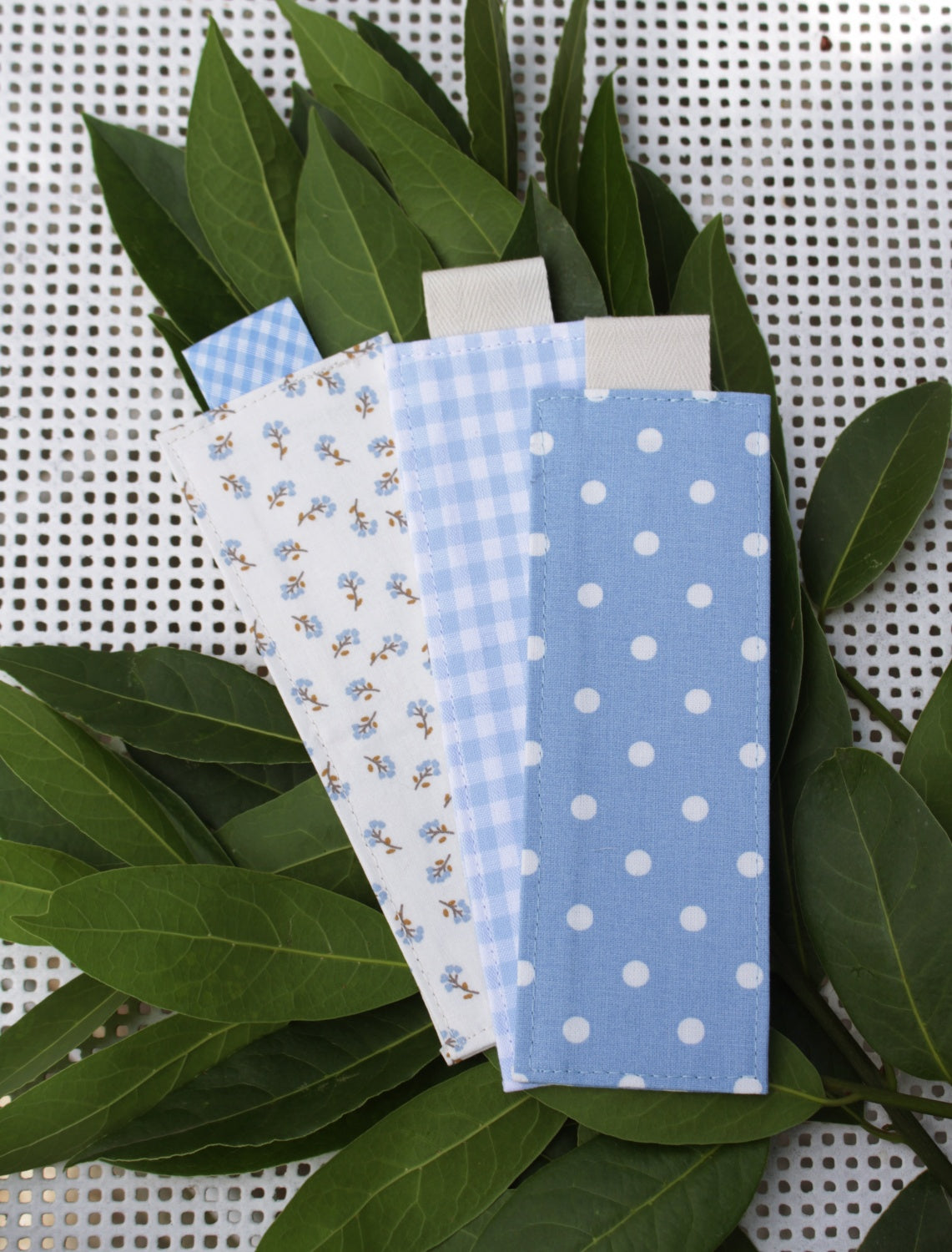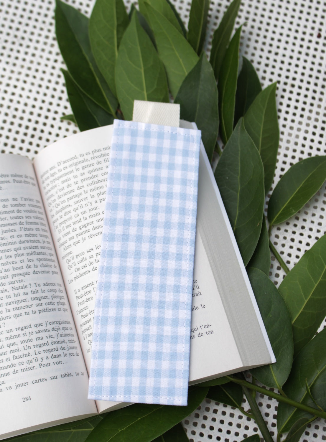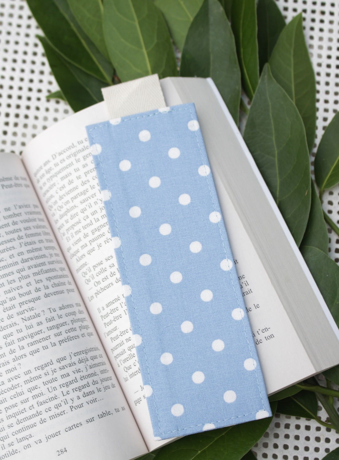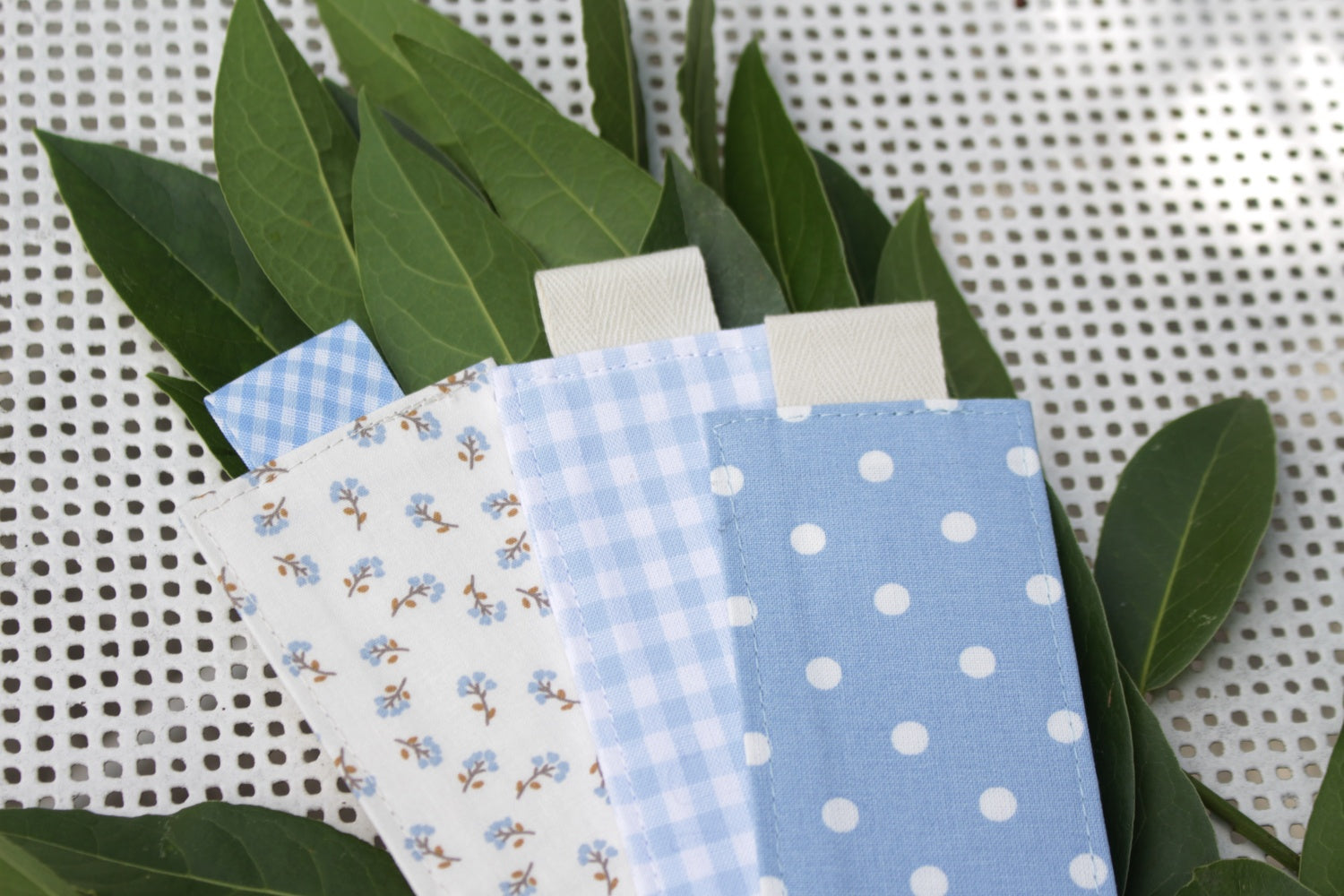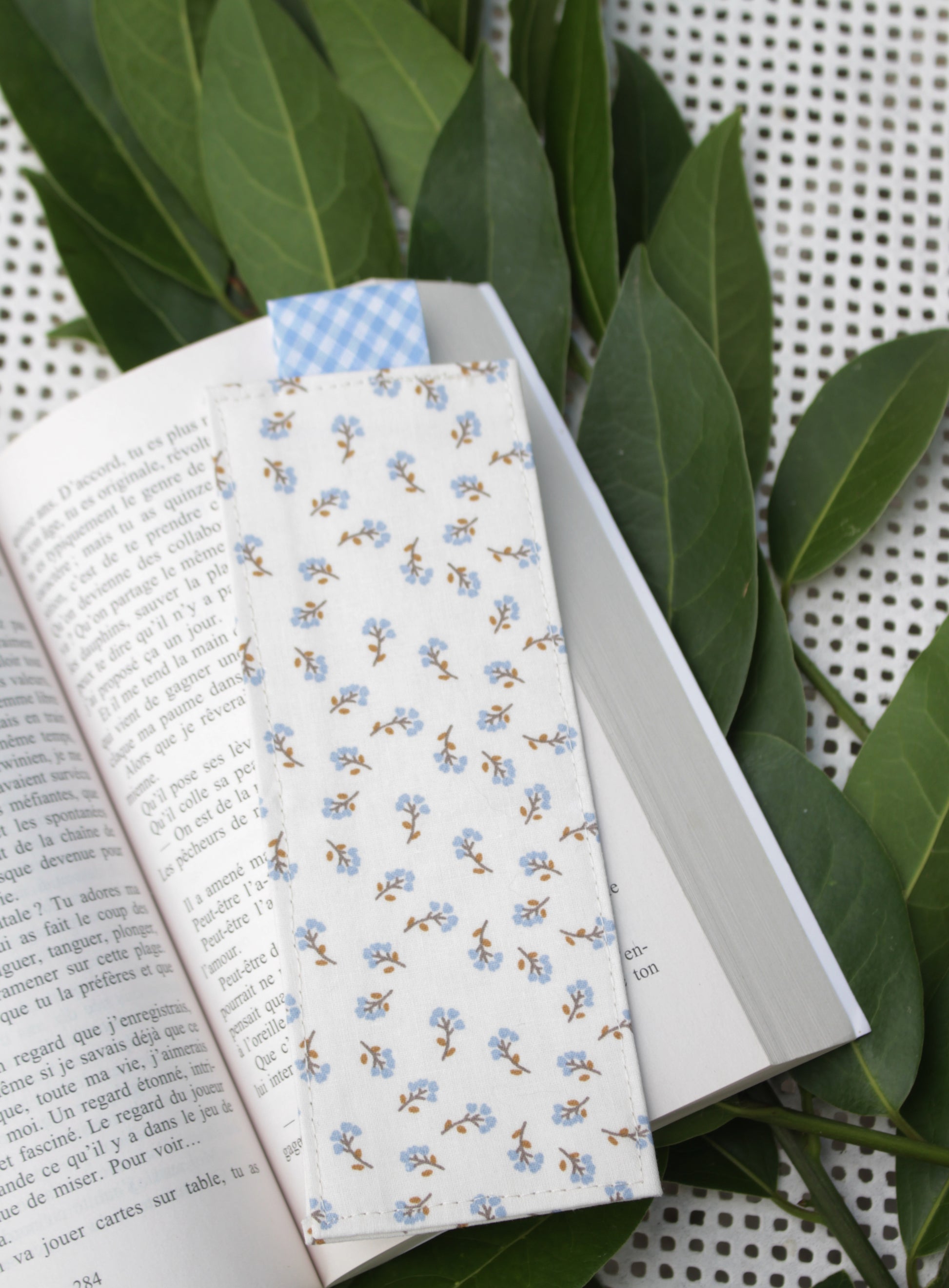 Je vous propose de jolis marques-pages en tissu cousu par mes soins.