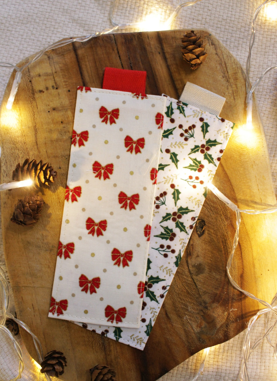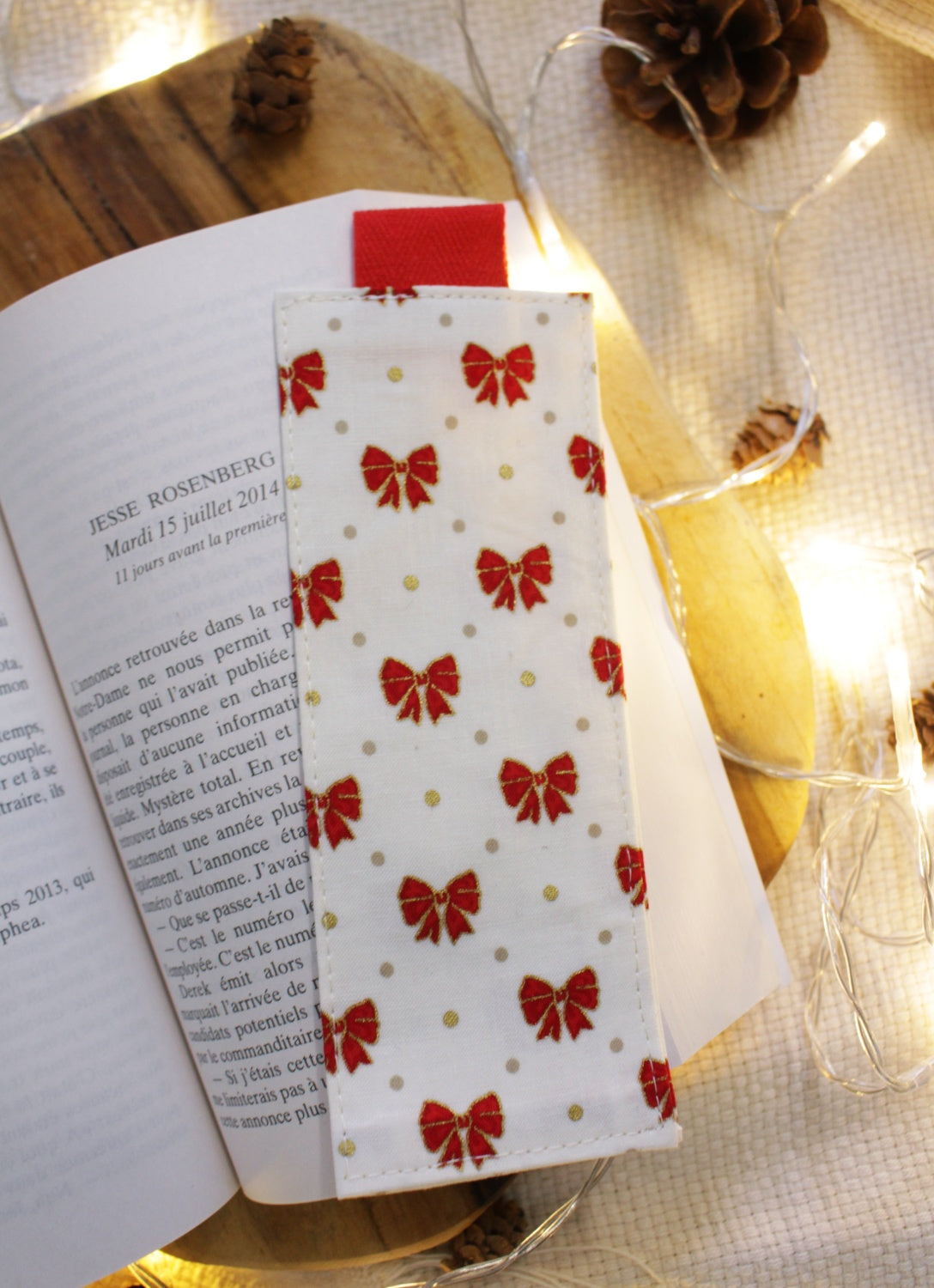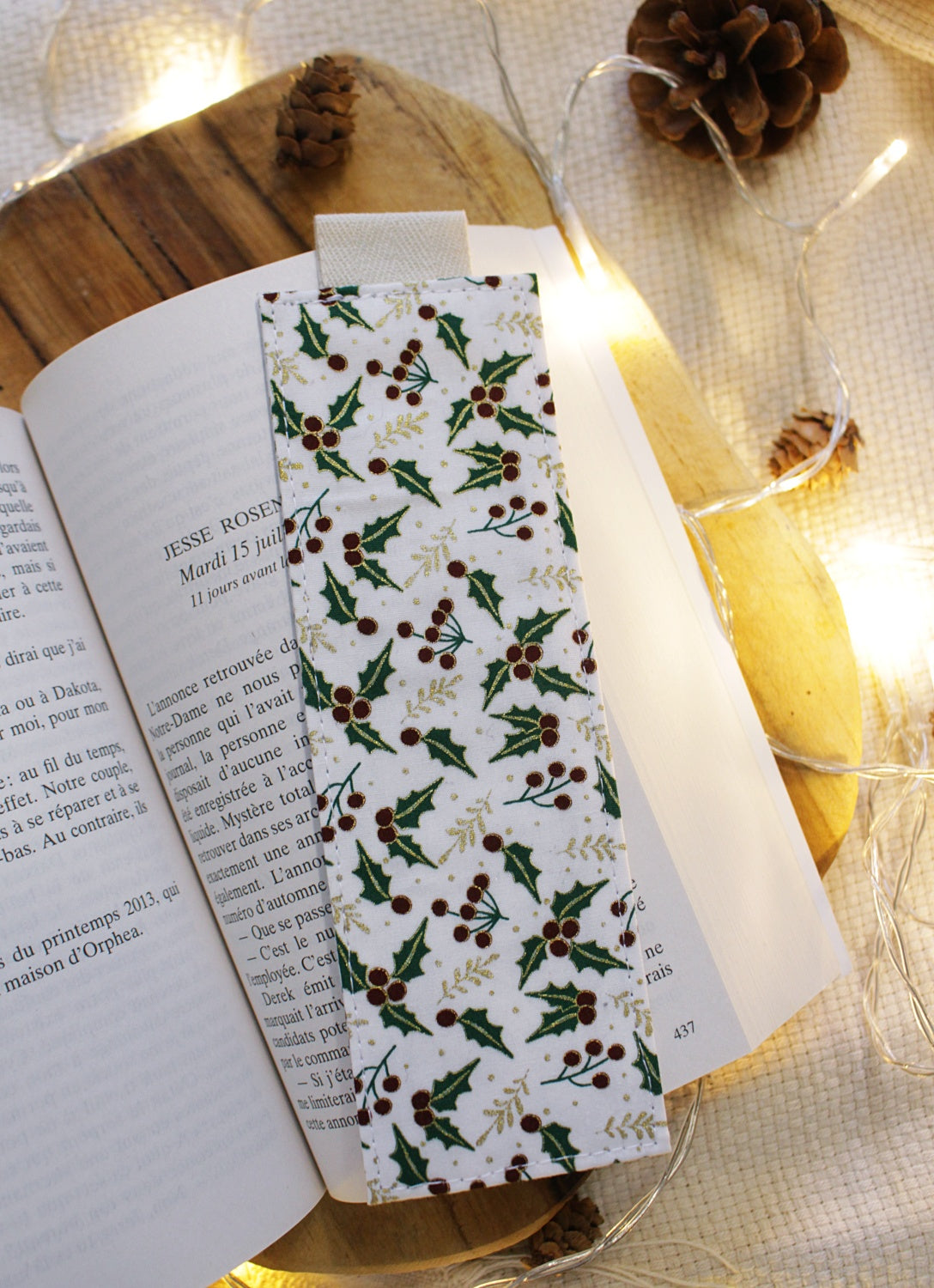 Marque-page en tissu, rigidifié et cousu main par mes soins.