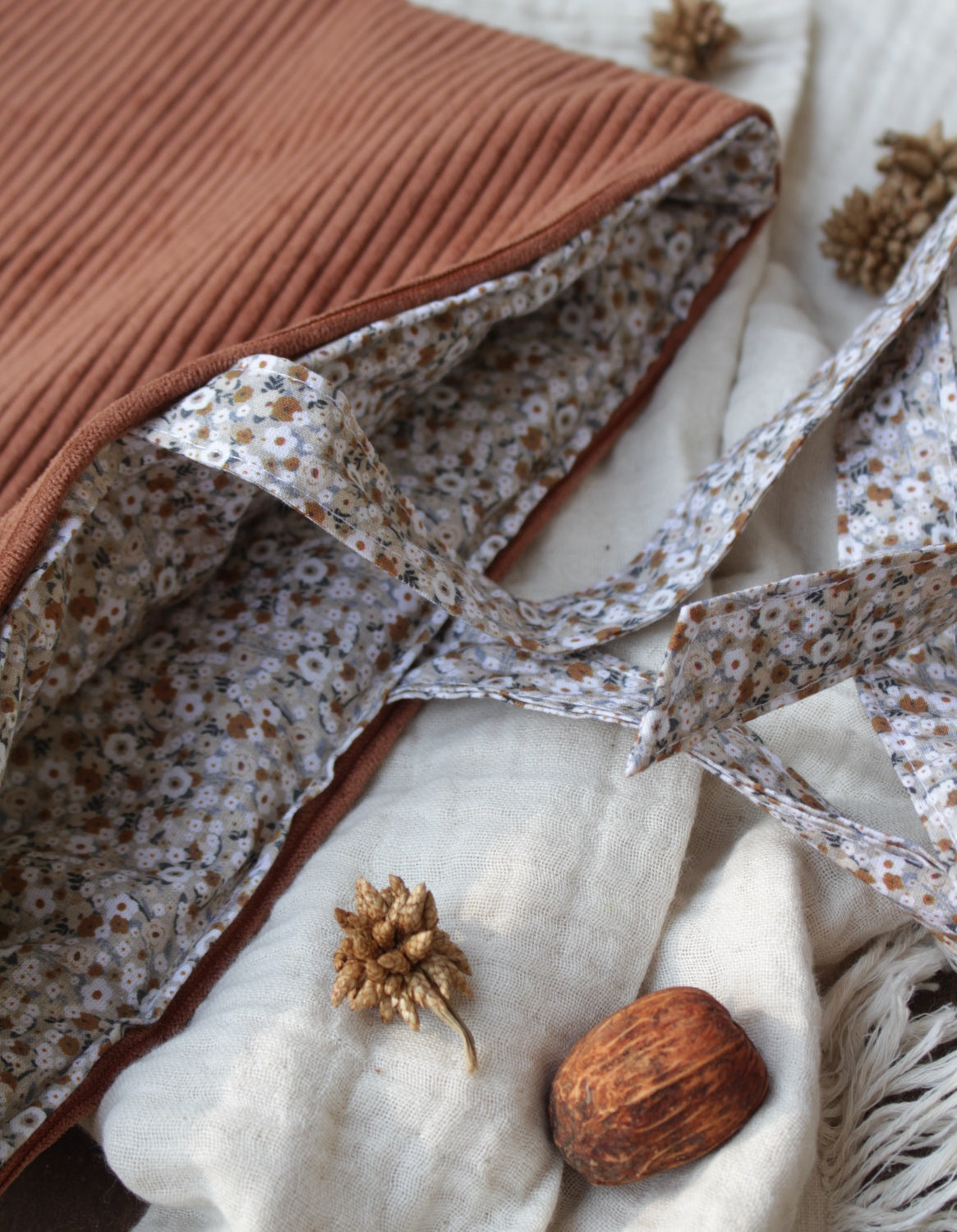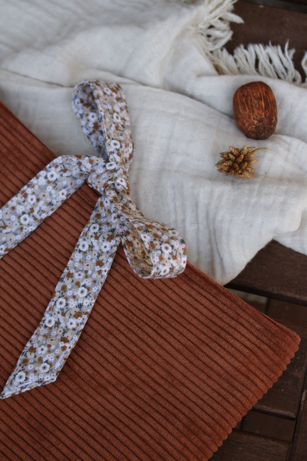 Une nouvelle forme plus élégante fait son entrée sur la boutique. Cette pochette en bi-matière(velours et coton), rembourrée en ouate, est dotée d'un noeud, afin de donner un peu plus d'esthétisme lorsque nous transportons nos livres.