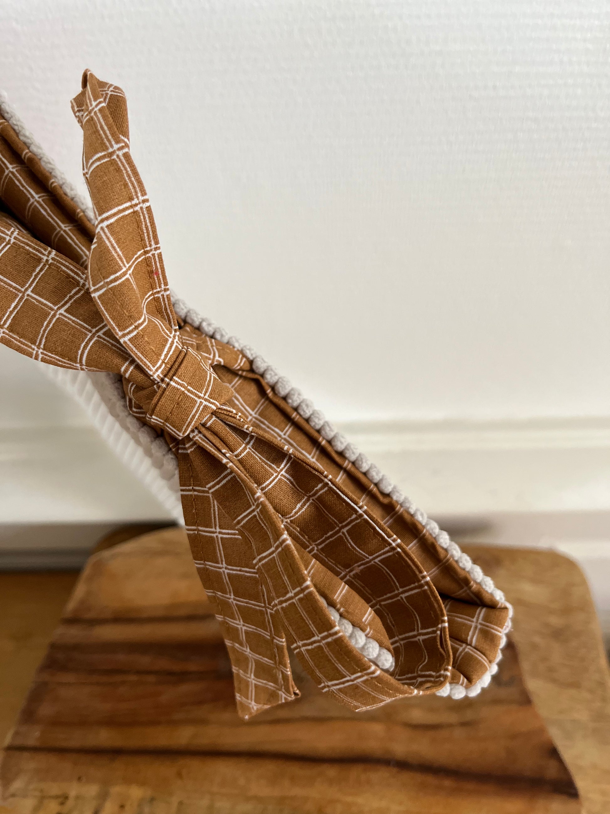Une nouvelle forme plus élégante fait son entrée sur la boutique. Cette pochette en bi-matière(velours et coton), rembourrée en ouate, est dotée d'un noeud, afin de donner un peu plus d'esthétisme lorsque nous transportons nos livres.