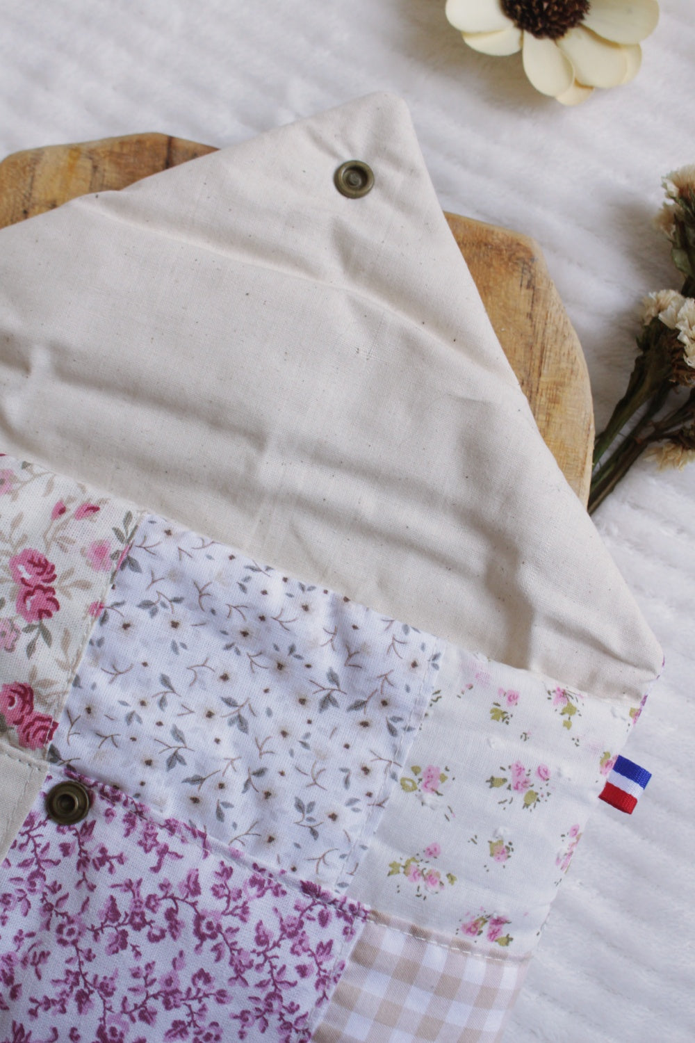 Le patchwork a été réalisé par mes soins avec mes chutes et fin de tissus, le temps de confection est donc plus long qu'une pochette avec uniquement deux tissus (2h de découpe/couture pour les patchwork). Chaque modèle est unique de part l'emplacement des motifs et refermé au point invisible. Cette pochette est donc disponible en édition limitée (moins de 3 unités par modèle)